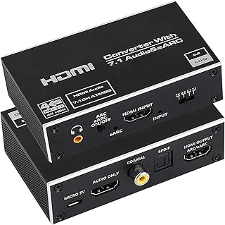 4K@60Hz HDMI 音声分離 光デジタル 音声 分離器 7.1ch Atmos「HDMI入力→HDMI出力ARC/eARC+Toslink/SPDIF+同軸デジタル+3.5mm音声出力」hdmiオーディオ分離器 3D HDMI 2.0b HDCP 2.2/2.3 RGB 8:8:8 PS3/PS4/XBOX/Blu-ray/DVD/HD Player対応