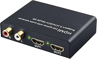 ELEVIEW HDMI 分配器 1入力 2出力 + 音声 分離 2画面 同時出力(SPDIF/Toslink 光デジタル + RCAステレオ音声出力)hdmi スプリッター 音声分配 hdmi オーディオ分離器 hdmi 音声分離器 HDMI1.4 4K30Hz 3D対応 PS3・PS4・Xbox・Blu-ray・HD DVD・Fire TVなど対応