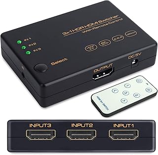 LiNKFOR HDMI切替器 3入力1出力 HDMIセレクター 4K x 2K 3D 2160P HDMI1.4対応 電源ケーブル リモコン付き SKY Box PS3 PS4 Xboxなど対応