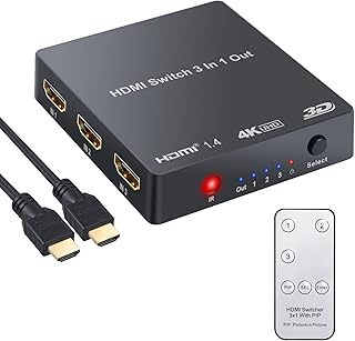 LiNKFOR HDMI切替器 音声分離機能 PIP機能 3入力1出力 4K@30hz 3D 2160P HDMI1.4b対応 RCAケーブル HDMIケーブル付き リモコン付き