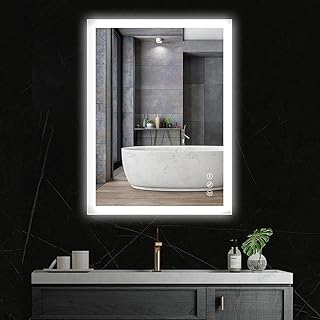 HAUSCHEN HOME 24 x 32インチ LED照明付きバスルーム壁マウントミラー 高ルーメン+CRI 95色温度+曇り止め 個別制御+調光機能+IP44防水+垂直&水平