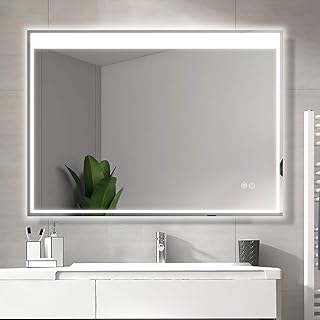 Beautimira LED ミラー 洗面所 浴室鏡 洗面台 ledライト付 3色調整可能 横掛け縦掛け可能 (40*60CM) シルバー